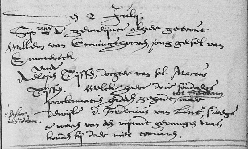 's-Heerenbergse huwelijksakte van 2 juli 1637 waarin vermeld wordt dat de Zeddamse dominee Van Lindt door "de vijand" is gevangengenomen. Bron http://zoekakten.nl