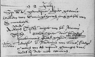 | huidige versie | 22 jul 2016 16:10 | 804 × 484 (168 kB) | Verre neef (overleg | bijdragen) | 's-Heerenbergse huwelijksakte van 2 juli 1637 waarin vermeld wordt dat de Zeddamse dominee Van Lindt door "de vijand" is gevangengenomen |