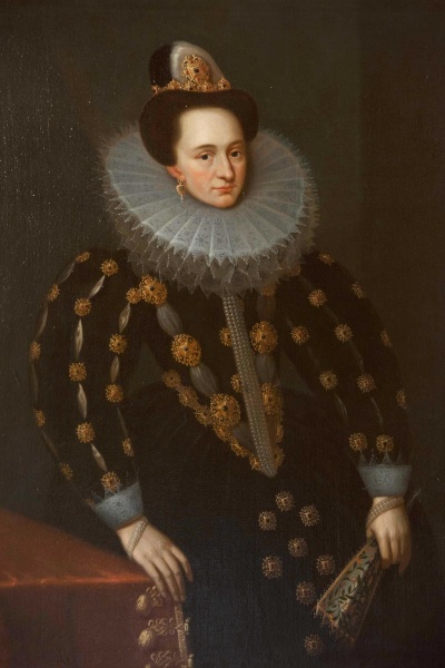 Bron: https://mijngelderland.nl Maria van Nassau, (1556-1616), Portret door I. de Jager naar Paulus Mooreelse, 1658 (Stichting Het Weeshuis, Buren). Foto: Fotopersburo William Hoogteyling, Buren