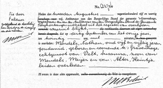 Overlijdensakte van Nathan Mendels, opgemaakt op 2 augustus 1945 in Den Haag. Bron www.gemeentearchief.denhaag.nl