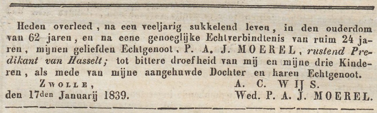 Uit de Overijsselsche Courant' van 22 januari 1839. Bron www.delpher.nl