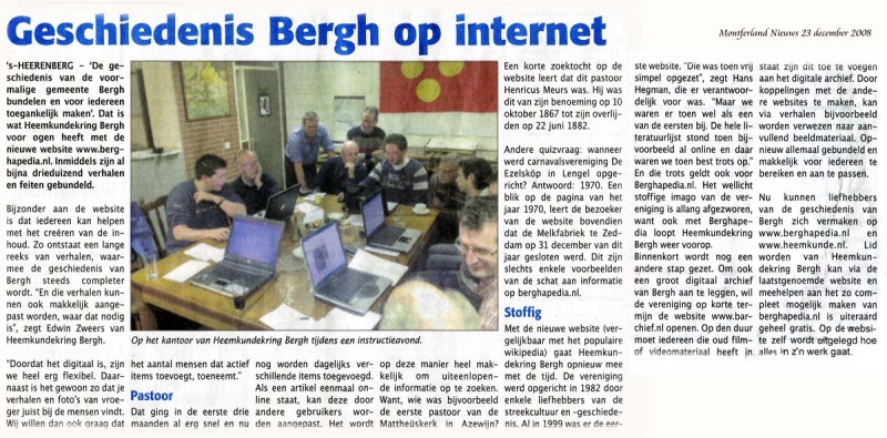 Bericht in Montferland Nieuws van dinsdag 23 december 2008.