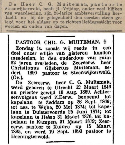 Boven: uit Het Nieuws van den Dag van 15 augustus 1894 Onder: uit dagblad Het Centrum van 12 juni 1928
