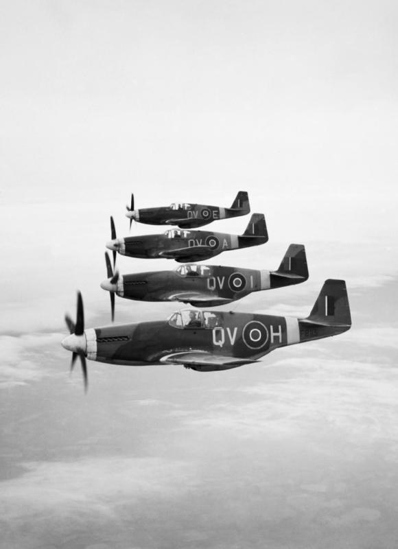 Een formatie Mustangs III van 19 Squadron RAF. Foto Imperial War Museums © IWM (CH 12876)