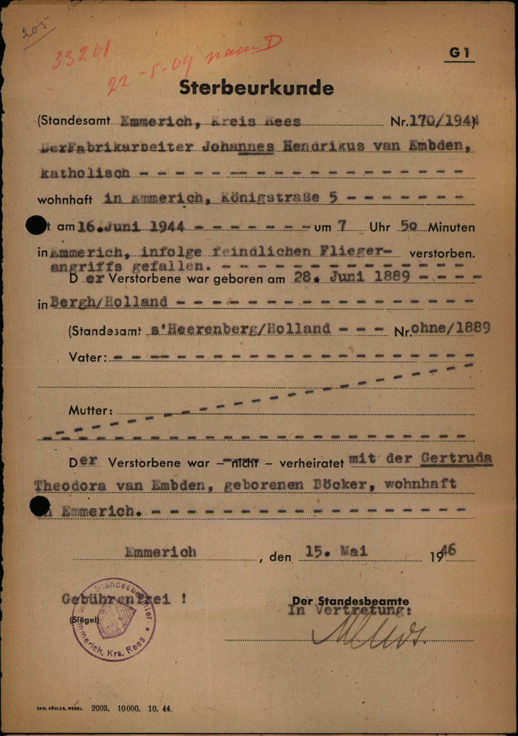 Bron: Duitse overlijdensakten, CBG|Centrum voor familiegeschiedenis