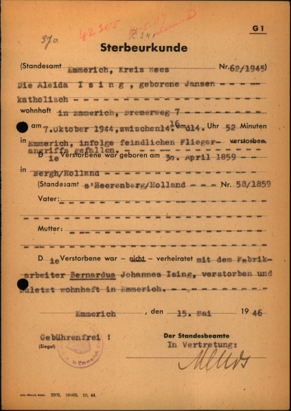Bron: Duitse overlijdensakten, CBG|Centrum voor familiegeschiedenis
