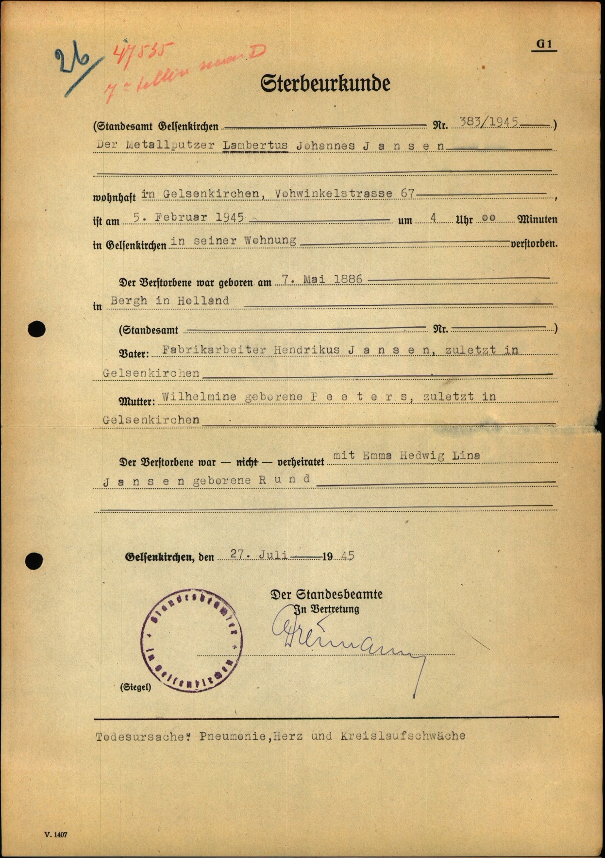 Bron: Duitse overlijdensakten, CBG|Centrum voor familiegeschiedenis