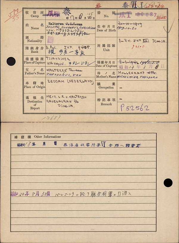 Japanse interneringskaarten, toegangsnummer toegang 2.10.50.03, inventarisnummer 431