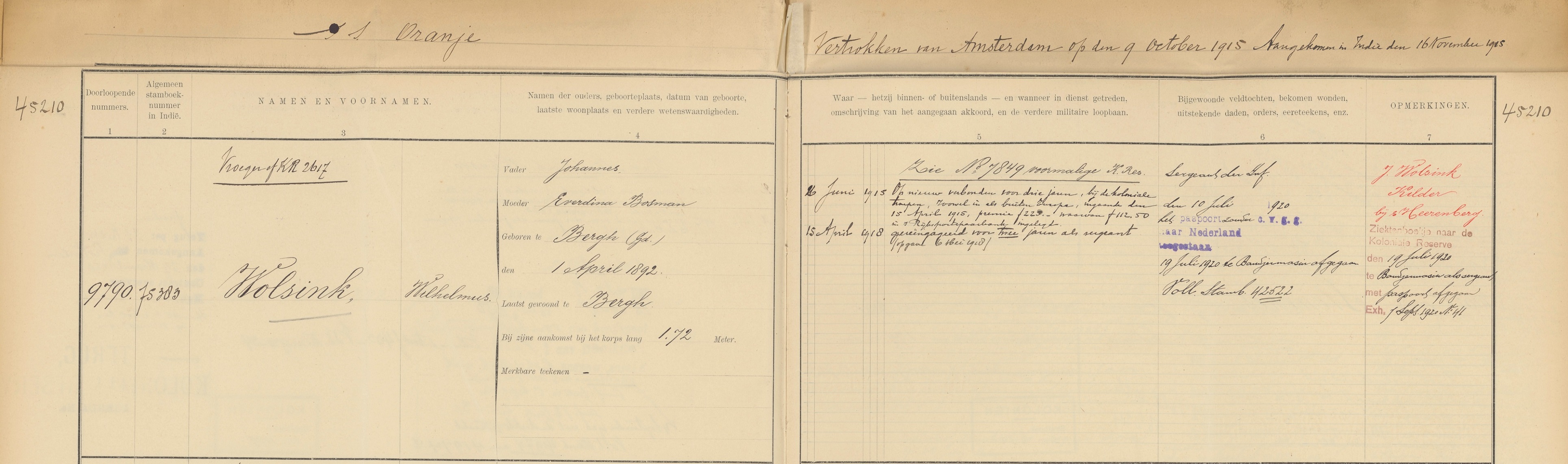 https://www.nationaalarchief.nl/onderzoeken/zoekhulpen/militairen-nederlands-indie-knil-1815-1950-onderofficieren-en-soldaten Nationaal Archief], 2.10.50 Inventaris van het archief van het Ministerie van Koloniën: Stamboeken en pensioenregisters van Militairen KNIL in Oost- en West-Indië, 1815-1949 (1954), suppletiefolium 45210