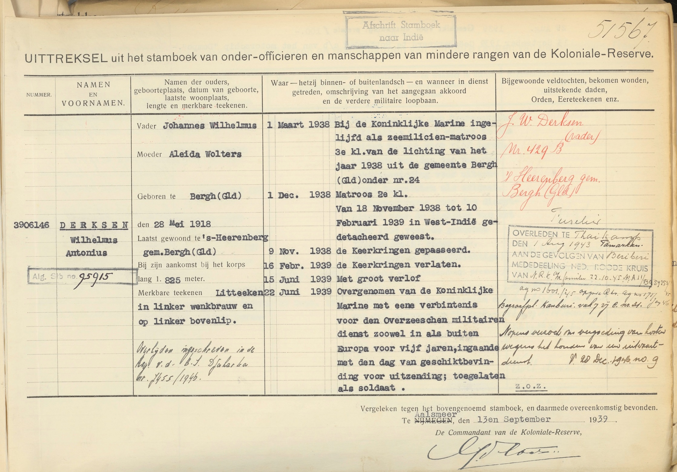 Onderofficieren en soldaten KNIL 1815-1950, toegangsnummer 2.10.50, suppletiefolium 51567
