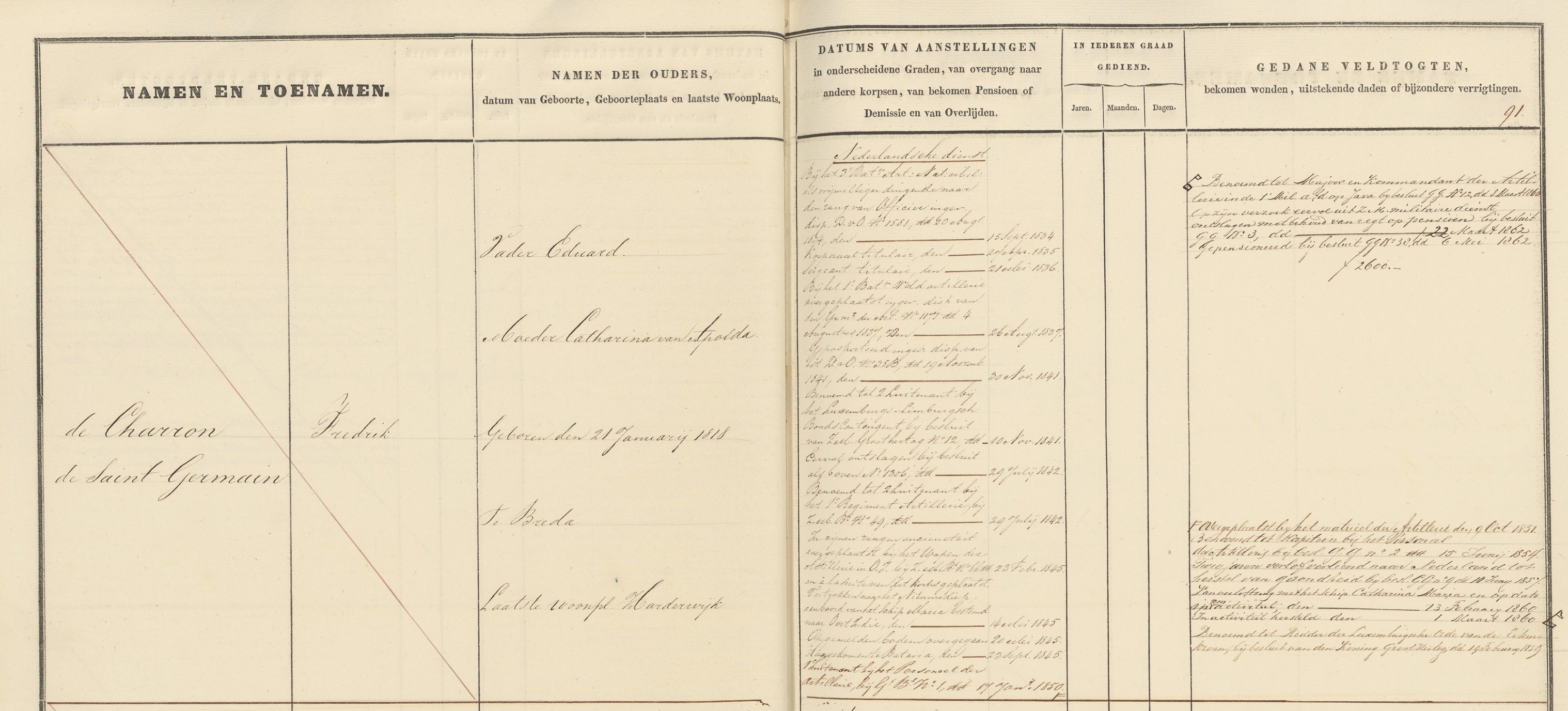 https://www.nationaalarchief.nl/onderzoeken/zoekhulpen/militairen-nederlands-indie-knil-1815-1950-officieren Toegangsnummer 2.13.04 Inventaris van de dienststaten en stamboeken der Officieren van de Koninklijke Landmacht en van de koloniale troepen in Nederland, (1715) 1814-1940 (1945)], inventarisnummer 255, folionummer 59