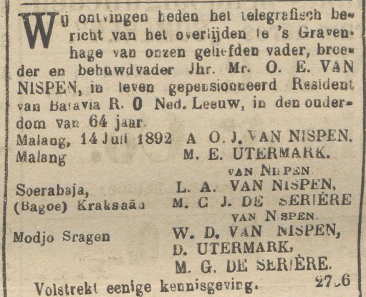 Uit De Locomotief van 19 juli 1892. Bron http://kranten.kb.nl