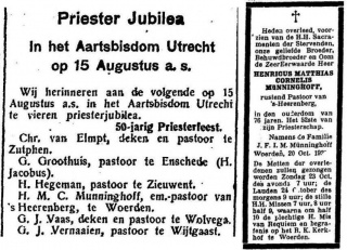 Berichten over pastoor Münninghoff in het dagblad Het Centrum van 11 augustus 1926 en 22 oktober 1927