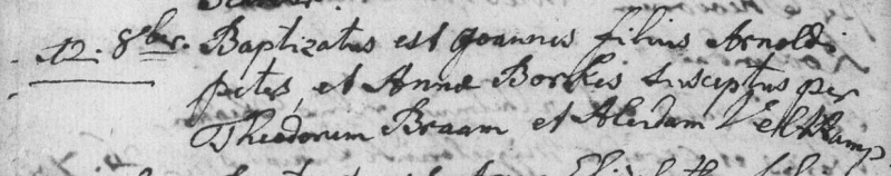 De inschrijving van Johannes Peters op 12 oktober 1791 in het r.-k. doopregister van Zeddam. Bron http://zoekakten.nl