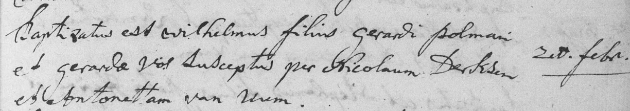 Wilhelmus Polmans inschrijving van 21 februari 1774 in het r.-k. doopboek van Zeddam. Bron http://zoekakten.nl