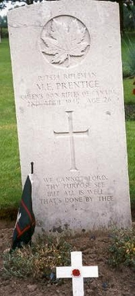 Grave Marker – This photo of Rfn Prentice's gravemarker was taken in June 2003. Bron http://www.veterans.gc.ca