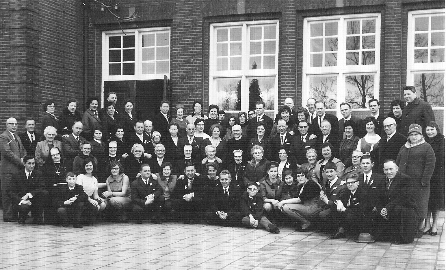 Groepsfoto tijdens het professiefeest van Zuster Agnesa, 1966.