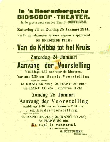 Raambiljet van Familiebioscoop Schuurman uit Januari 1914.