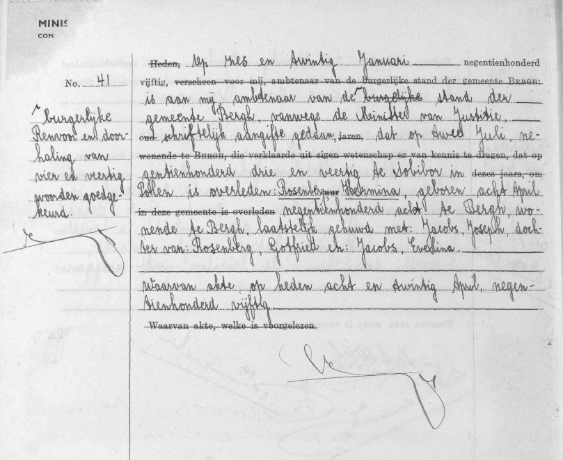 | huidige versie | 30 apr 2015 14:30 | 809 × 662 (515 kB) | Verre neef (overleg | bijdragen) | Hermina Rosenbergs overlijdensakte in de gemeente Bergh. Bron http://zoekakten.nl |