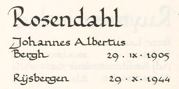 De vermelding van JA Rosendahl in de Erelijst van gevallenen 1940-1945, blz. 1019