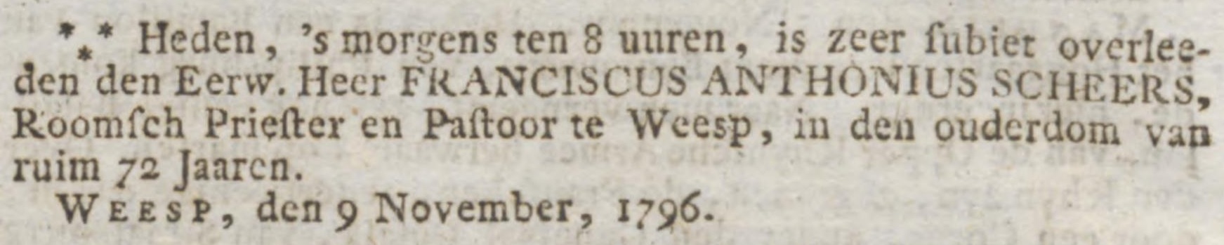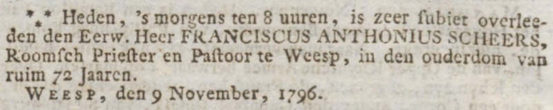 Uit de Oprechte Haarlemse Courant van 15 november 1796 op http://www.delpher.nl
