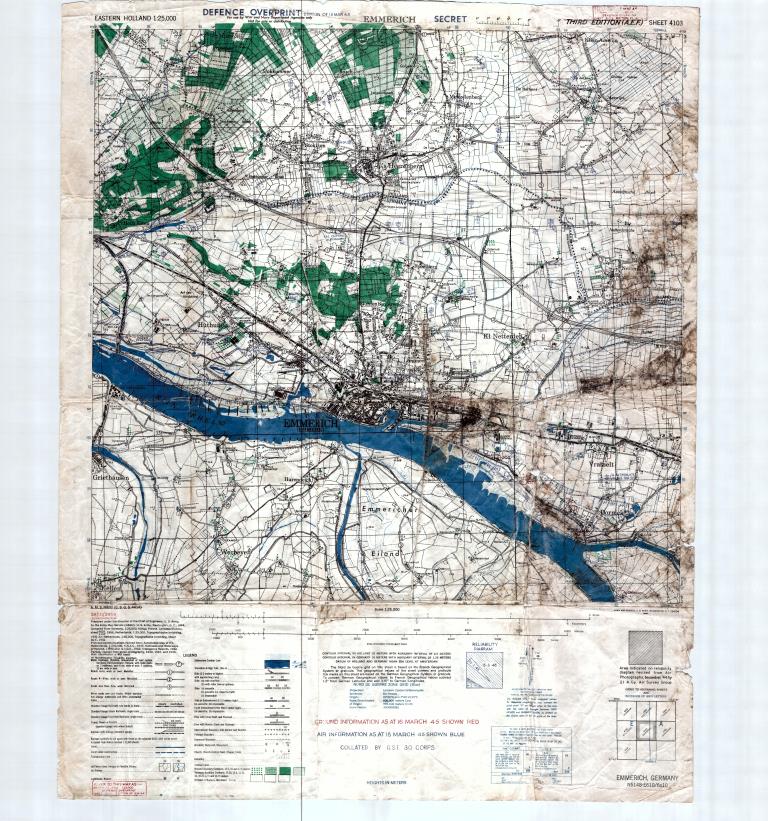De geallieerde stafkaart die kort na de bevrijding in Braamt is gevonden