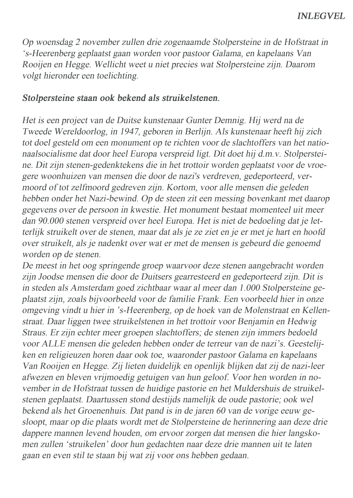 tekst Stolpersteinen 2 november 2022