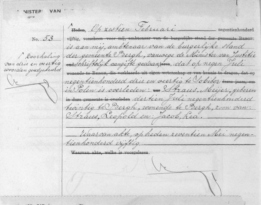 Max Straus' overlijdensakte in de gemeente Bergh. Bron http://zoekakten.nl