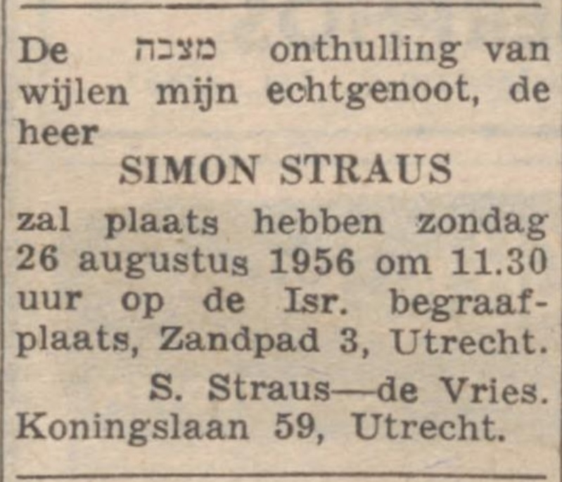 Uit het Nieuw Israelietisch Weekblad van 24 augustus 1956 op http://www.delpher.nl