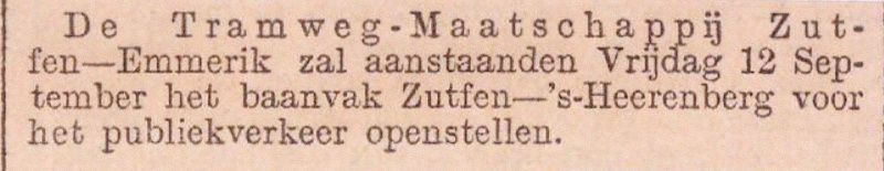 vrijdag 12 september 1902 is het baan vlak Zutpfen 's-Heerenberg voor het verkeer geopend
