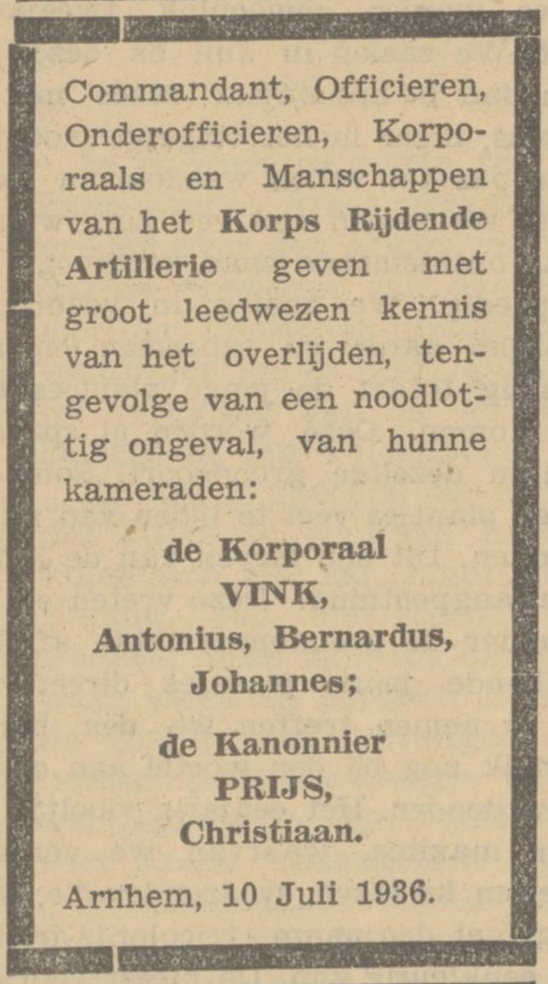 Uit de Arnhemsche Courant van 11 juli 1936 op http://www.delpher.nl