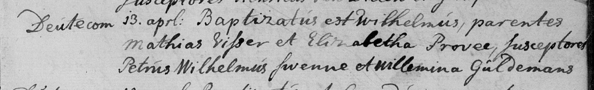 inschrijving van Wilhelmus Visser op 13 april 17863 in het r.-k. doopregister van Doetinchem en Wijnbergen. Bron http://zoekakten.nl