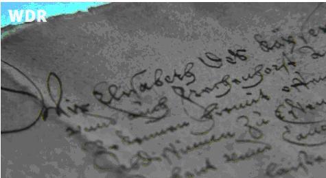 De laatste brief van Elisabeth van den Bergh aan Floris van Pallandt van 10 december 1613. Beeld uit de WDR-uitzending "Der Essener Dom" van 8 juni 2010.