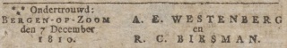 Uit de Opregte Haarlemsche Courant van 12 december 1810 op http://www.delpher.nl
