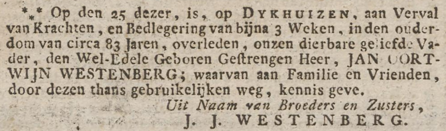 Uit de Opregste Haarlemsche Courant van 29 november 1808 op http://www.delpher.nl