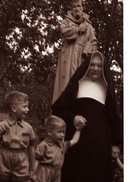 Wigberta met aan de hand Benny en Gerard Schuurman