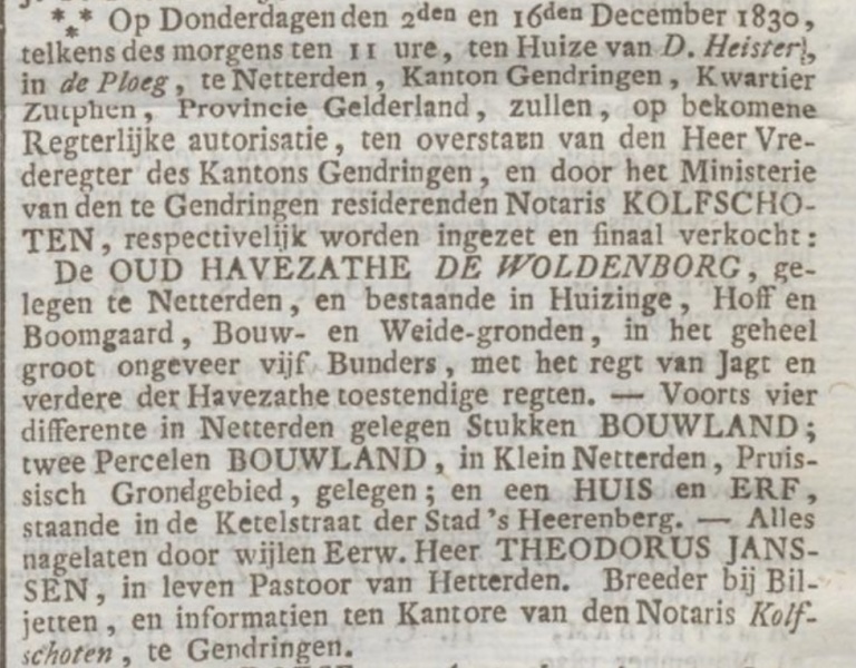 Uit de Opregte Haarlemsche Courant van 23 november 1830 op http://www.delpher.nl
