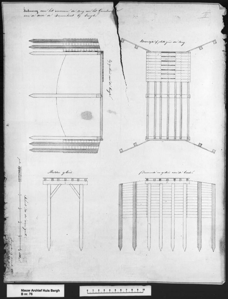 Tekening door Arnold te Wiel jr. in het Nieuw Archief Huis Bergh, archieftoegang 0204, inventarisnummer B76