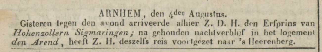 uit de Arnhemsche Courant van 5 augustus 1830. Bron www.delpher.nl