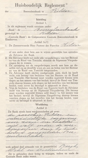 Op de algemene ledenvergadering van 14 maart 1927 telde de bank 22 leden. In het bestuur werden gekozen de medeoprichters G. Hietkamp, J.G. Gerritsen en F. Gasseling, terwijl A. Arnds, G. Gerritsen en J Kraaijvanger de Raad van Toezicht vormden. F. Gasseling was blijkbaar voorzitter, want bij zijn vertrek naar Lengel in augustus 1929 kreeg hij als Directeur der Boerenleenbank een geschenk aangeboden.