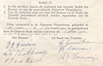 Meester Lanke was vanaf het begin tot 1954 de kassier. Zijn opvolgers waren: