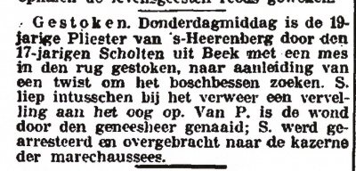 Verzwijgen kon je e.e.a. ook niet, omdat de bessen blauw aan je vingers afgaven en dit er moeilijk weer af te krijgen was. Eenmaal betrapte ons een boswachter nabij de Hulzenberg en deze riep herhaalde malen 'In naam der wet HALT'; omdat wij kris kras door het bos renden kreeg hij ons lekker niet te pakken en hadden we deze keer wel succes.