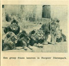 De Heer Burgers heeft hier nog niet zolang geleden eenHoenderpark, maar meer voor het fokken van duurdere pluimveesoorten. (Siereenden, Pauwen Fazanten enz.)aangelegd, dat de kern van het dierenpark vormt. overlevelijk is de eigenaare overgegaan van allerlei wilde dieren, grotendeels afkomstig van duitse dierentuinen., met het resultaat dat er thans een collectie verkregen is wwar ook leeuwen niet aan ontbreken. Drie leeuwen vormen de jongste aanwinst van het dierenpark. Uiteraart is de collectie van het pluimvee nog het grootst en voledigst, deze dieren vormen immers de oorsprong van het gehele dierenpark, zijn het makkelijkst tehouden en teelen zich het snelst voort,een jaart broeden maakt dat een paar fazanten aan groeid tot enige rennen vol, en waar deze dieren hun geld wel opbengen, is de onderneming voor het pluimvee ook beter productief te maken.