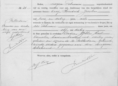 Cordia's overlijdensakte, opgemaakt op
