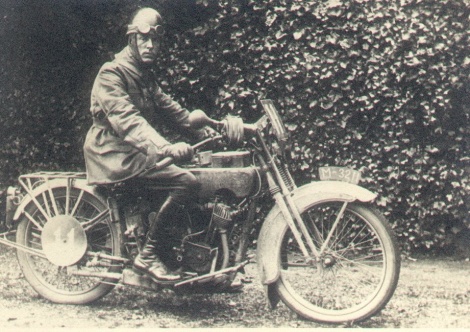 Zeno op oefening met de Vrijwillige Landstormkorps Motordienst in de zomer van 1922. Let op het kentekennummer, dat hetzelfde is als op de foto van de Zesdaagse van België. De motorfiets links is van Zeno's broer Mel.