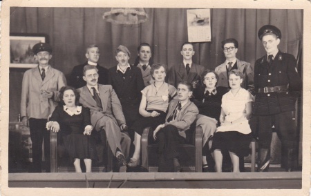 23 november 1952 met boven vlnr: Lodewijk Seegers, kapelaan Caree, B. van Kempen, J. Bisseling, Godschalk, Wim Reessink en Wim Kupers. Onder vlnr: M. Giezenaar, L. Seegers, R. van Alen, F. Wennekes, D. te Booij en Riet Dijker |