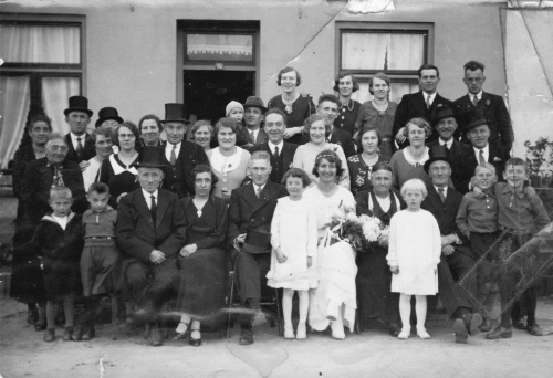 Hieronder een zwart-witfoto van met name de families Ebbing en Braam. De foto is genomen voor het huis aan de Oude Doetinchemseweg (nu) nummer 52 te 's-Heerenberg ter gelegenheid van de bruiloft van Mia Braam en Frits Ebbing op 6 oktober 1936. Daarnaast een kleurenfoto van Johanna van Uum-Ebbing met zo’n beetje dezelfde groep mensen maar dan veertig jaar later, in 1976. Bijbehorende namen aangeleverd door Marinus Ebbing.
