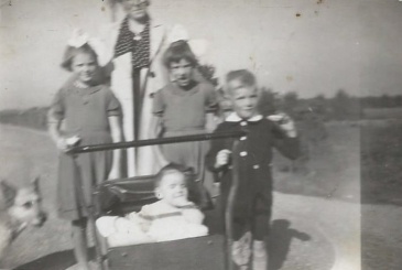 Hennie, Al, Gert en (in de wagen) Willy van Eck