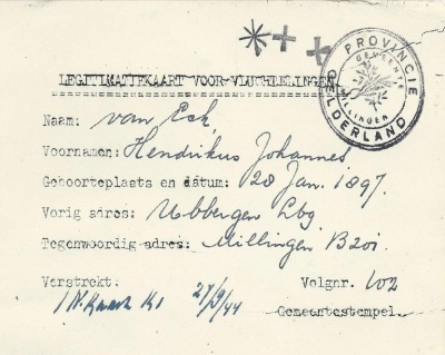 De legitimatiekaart voor vluchtelingen, die de gemeente Millingen aan Hent van Eck had uitgereikt.