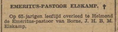 Na Achterveld was Elskamp kapelaan in Deurningen en Boerhaar. In 1915 werd hij pastoor in Vollenhoven en daarna in of omstreeks 1920 pastoor van Borne.